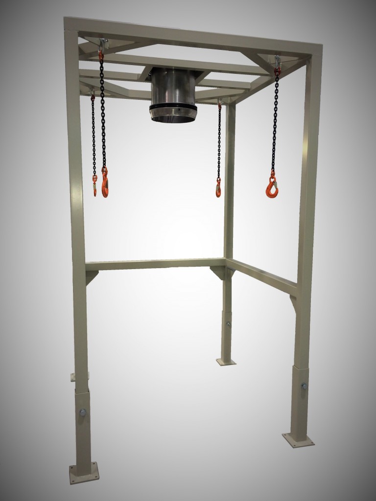 - SISTEMA DE TENSADO - Para llenar completamente el big-bag, la estación de llenado de big-bags FBB puede estar equipada con un sistema automático gestionado por pistones neumáticos para tensar las cadenas y permitir el llenado completo.